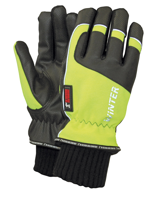 Manusi de iarna, cu material flexibil (nylon) de inalta vizibilitate pe dosul palmei si pe spatele degetului mare, cu insertii reflectorizante pe dosul palmei si pe degete. Manseta tricotata.