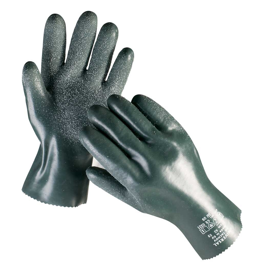 Manusi cusute – tricot din bumbac , imersat in PVC cu nitril, protectie impotriva riscului mecanic si chimic, lungimea variata pe marimi 35cm=7-10, palma antiderapanta #cu rugozitati