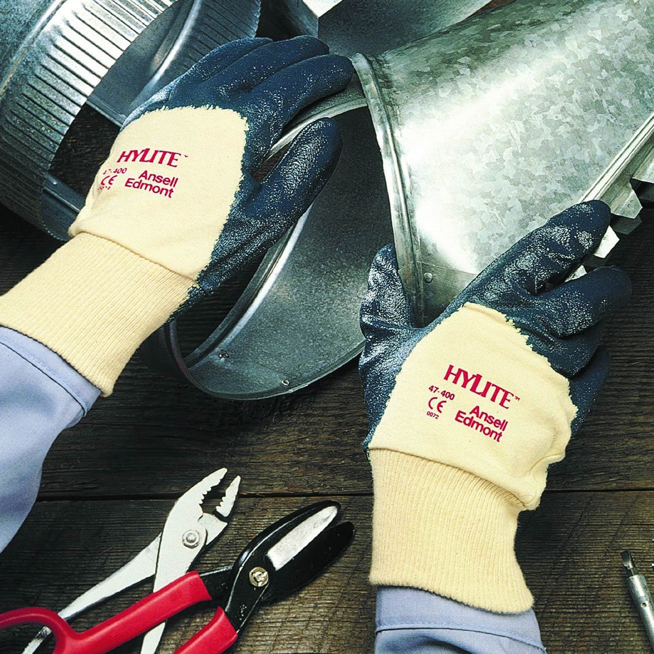 Manusi cusute- tricot din bumbac, imersate partial in nitril, mansete elastice, rezistente la ulei.