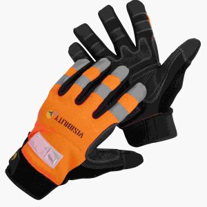 Manusi de avertizare pentru lucrul in zone slab iluminate, cu spatele din spandex cu elemente reflectorizante, piele sintetica cu intaritura din PVC in zonele cele mai expuse, cusaturi cu fir de Kevlar ce ofera o protectie suplimentara impotriva taierii sau arderii.