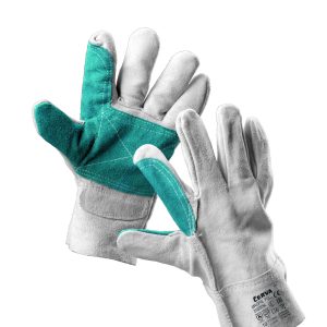 Manusi din piele spalt de bovina, intarite cu un strat dublu pe palma si degetul aratator, cu o manseta de 7 cm.