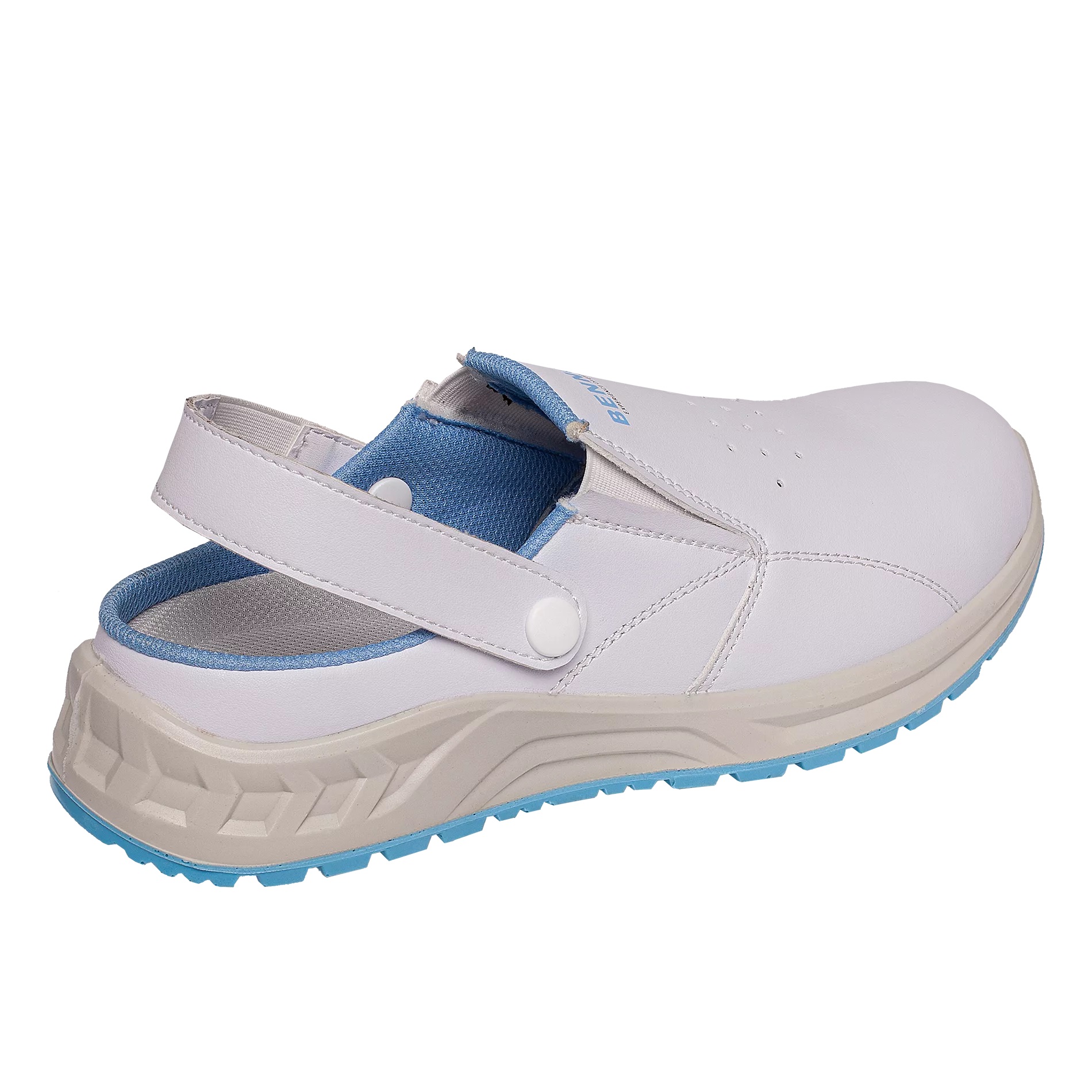 Saboti White OB nonmetalici – alb, 100% fără metal, cu design modern, concepuți pentru utilizare în medii uscate din interior sau exterior. Aceștia combină multe caracteristici utile într-un singur model. Saboții au partea superioară fabricată din microfibră perforată, pentru respirabilitate maximă. Nu au elemente de protecție suplimentare.