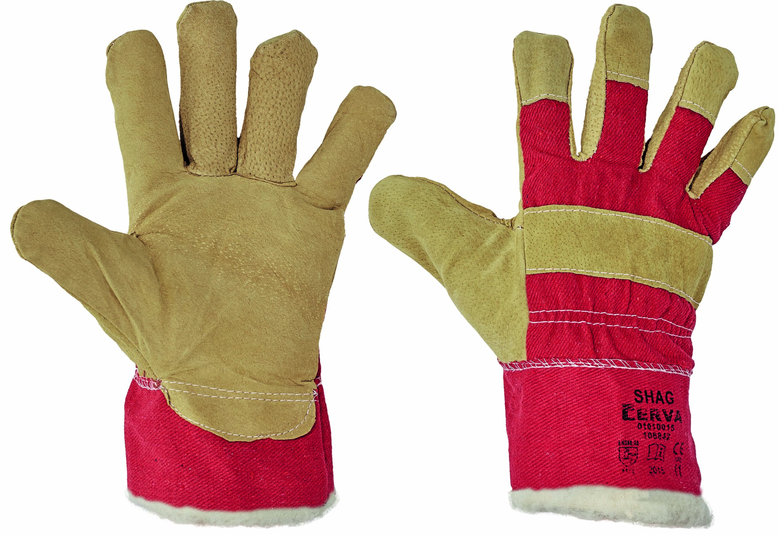 Manusi termoizolante din spalt de porc pe palma, dosul si manseta din tesatura alba de bumbac, insertie termica